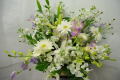 優しい色合いのお花はお悔み用として贈らる方のお気もちも一緒にお届けできます。洋風の淡い色のお花のアレンジはお供え以外の御用途にもお使いいただけます。